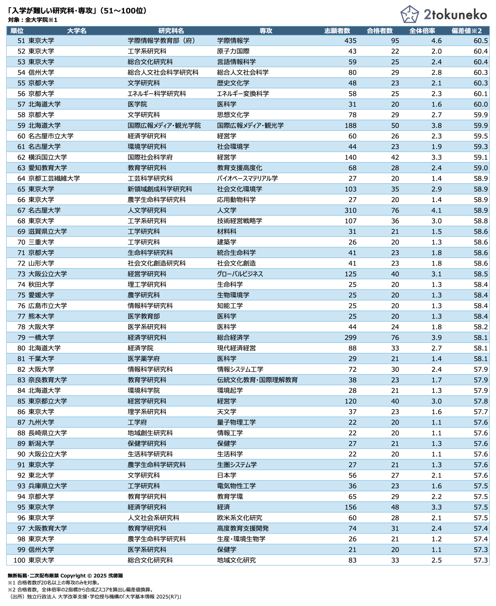 「入学が難しい研究科・専攻」(51〜100位)