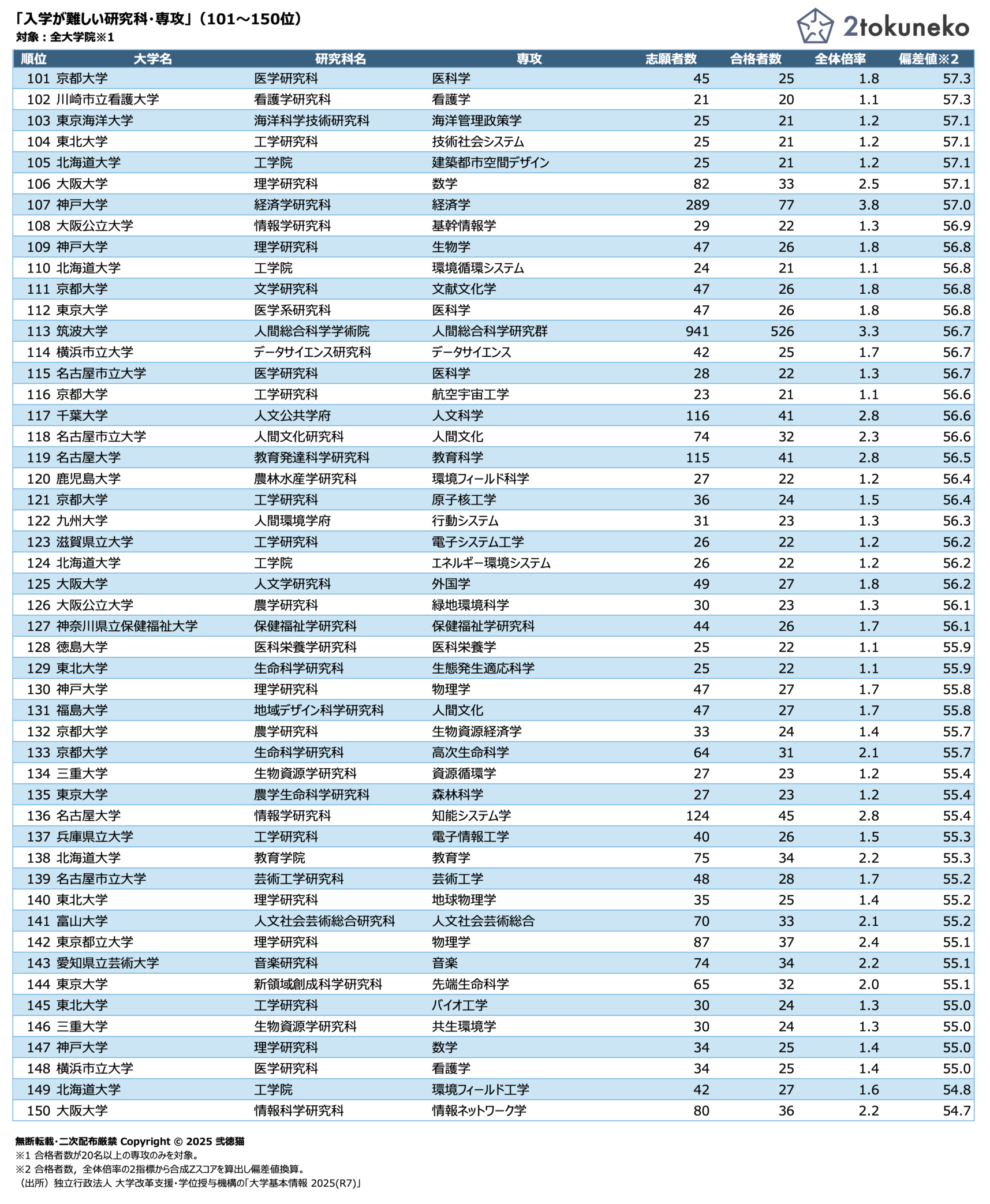 「入学が難しい研究科・専攻」(101〜150位)