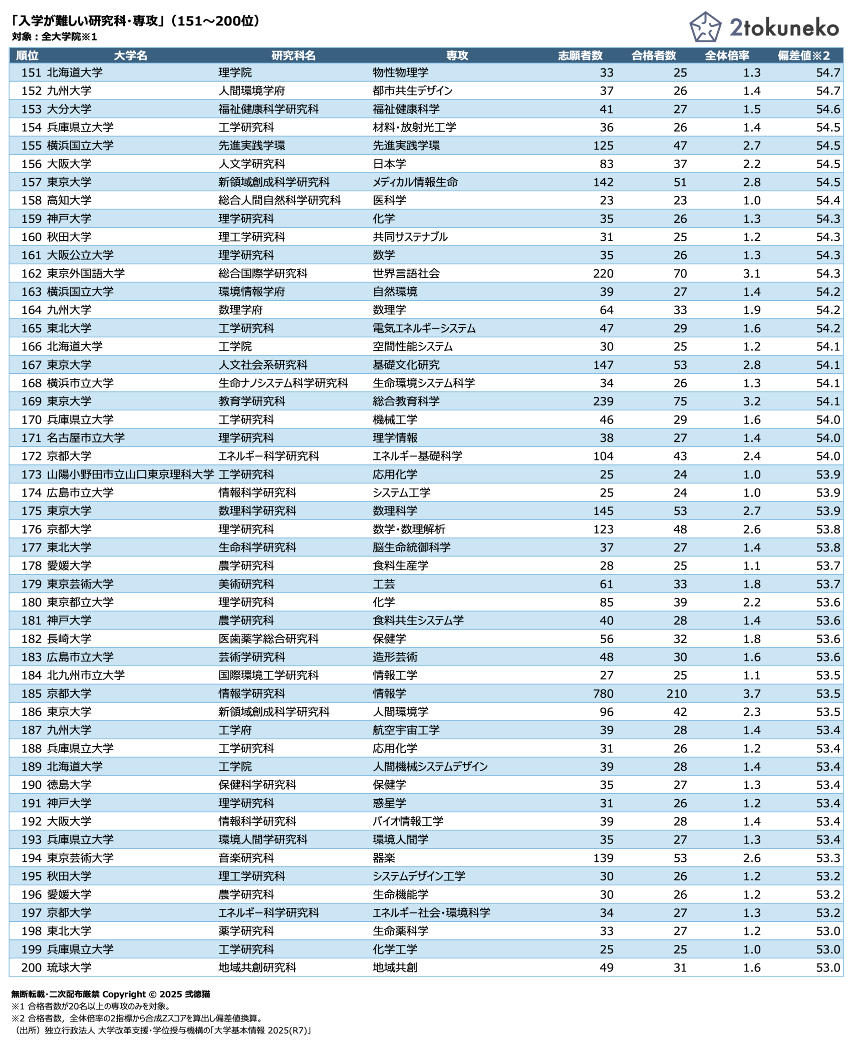 「入学が難しい研究科・専攻」(151〜200位)