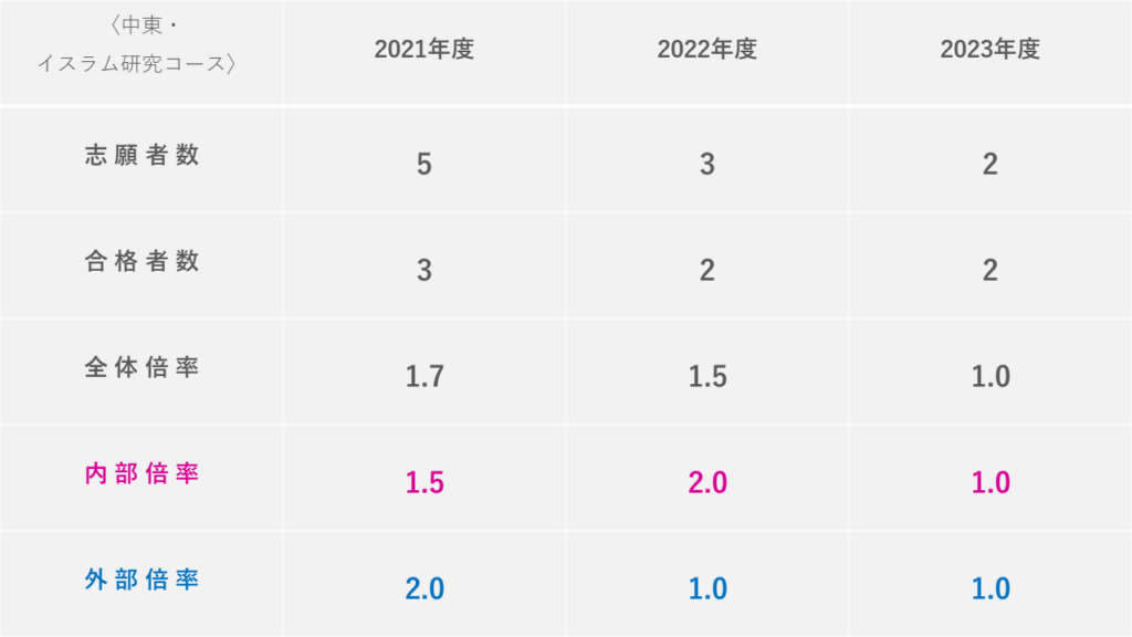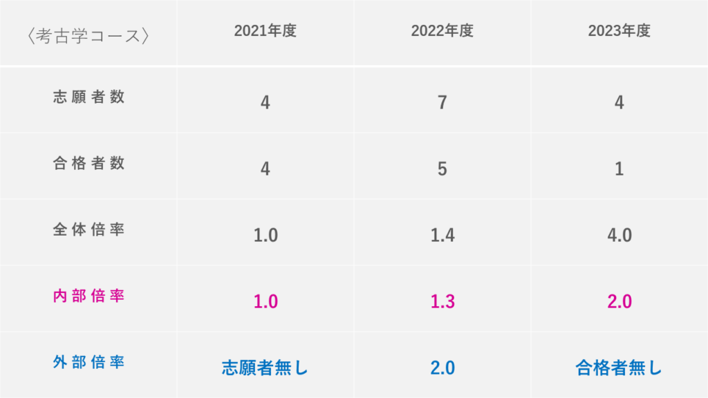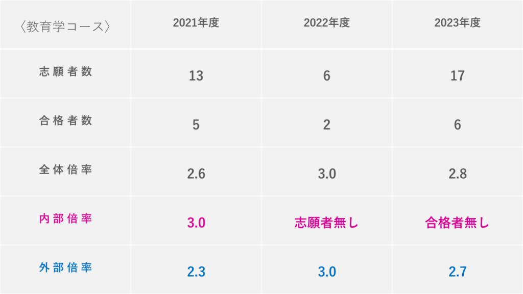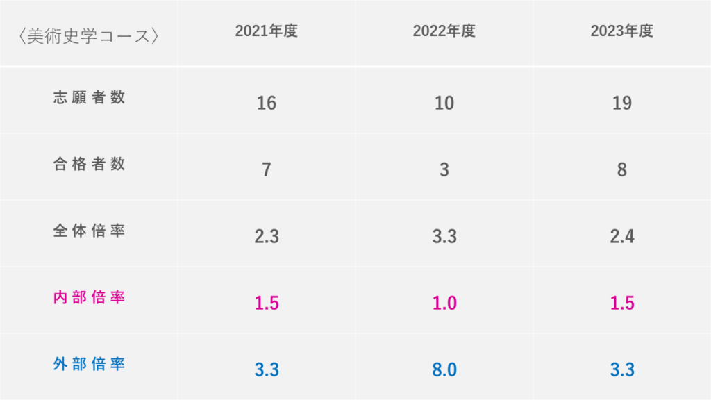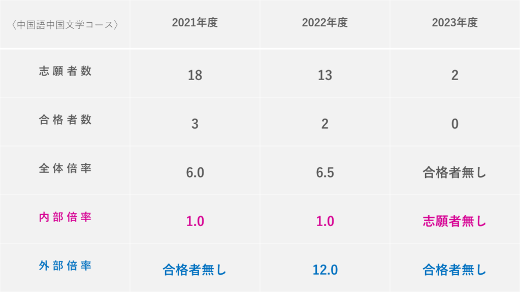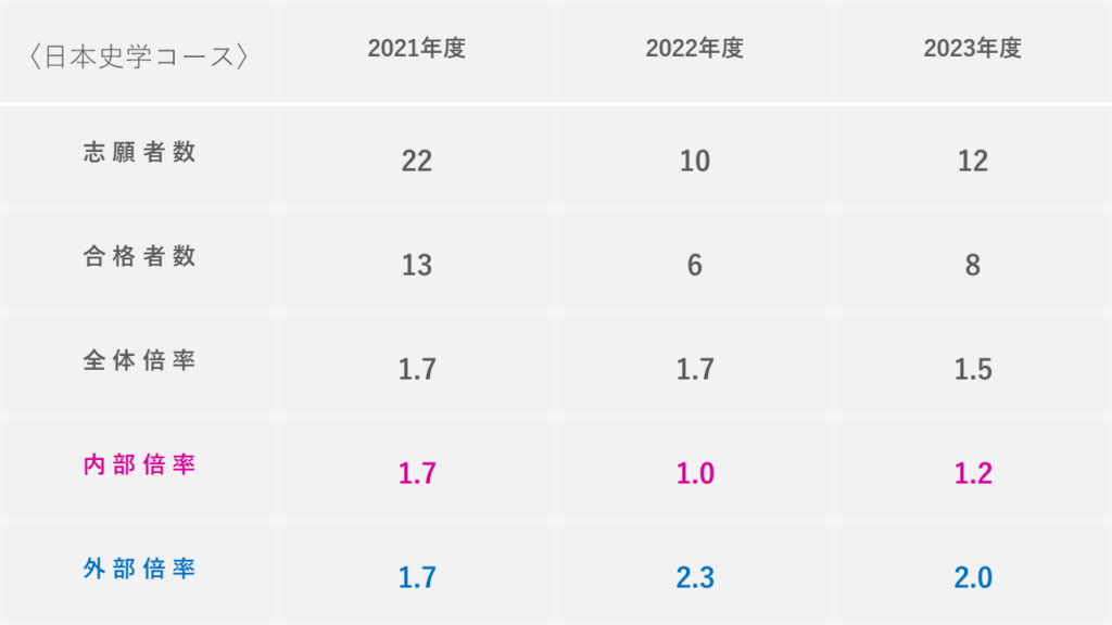 また、専攻別の過去数年分の倍率推移や、外部院試の倍率についても分かり易くまとめました!