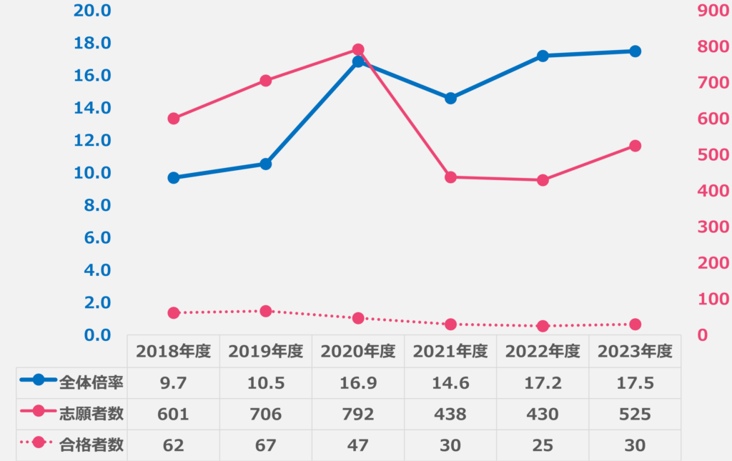 ※ 公式HPに「入試倍率は非公開である」と記載あり